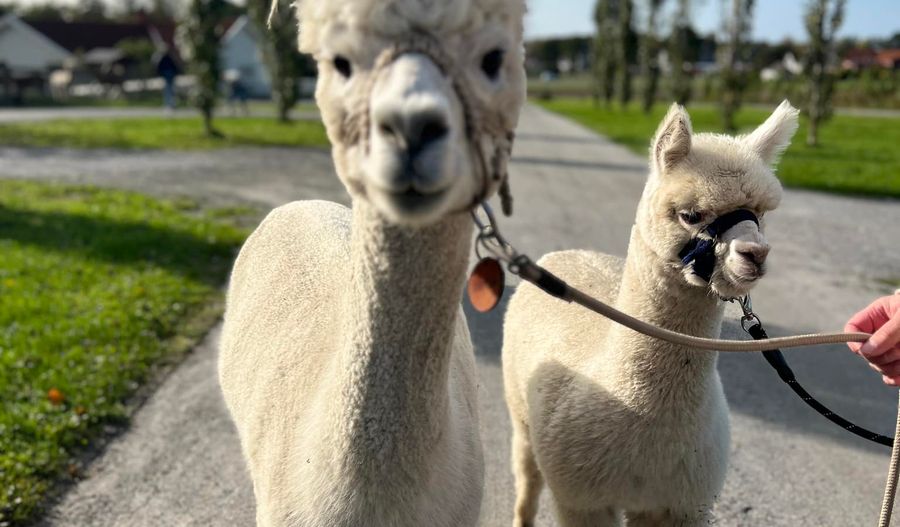 Vi har 5 herlige alpakkaer som elsker nye bekjentskaper. Hos oss kan du bli bedre kjent med dem på en alpakkavandring, en unik opplevelse der du får gå tur med en av våre alpakkaer.