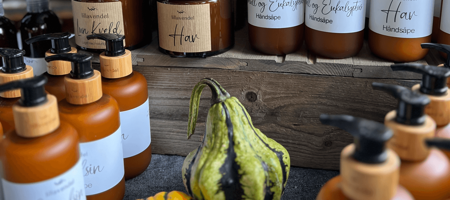 Lillavendel er en sjarmerende landhandel og gårdskafé i Helgeroa, hvor vi skaper egne velværeprodukter med rene, naturlige råvarer.
