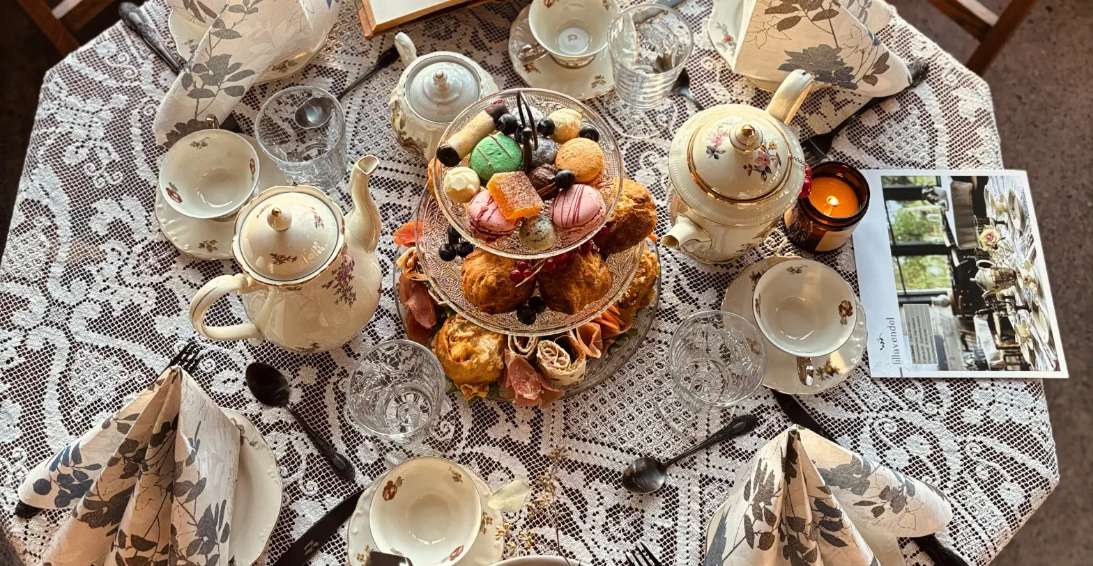 Afternoon tea på Lillavendel er mer enn et måltid – det er en opplevelse. Her gjør vi det på vårt vis, med lokal mat, vår egen lemon curd, nystekte scones og gode, gjennomtenkte smaker. Enten du sitter ute i hagen på en lys sommerdag eller inne i varmen ved de store vinduene med utsikt, inviterer vi til en rolig stund der tiden får gå litt saktere. Perfekt for en hyggelig samling med gode venner, fine samtaler og noe godt i koppen. Vi serverer frukt-te fra Crema.