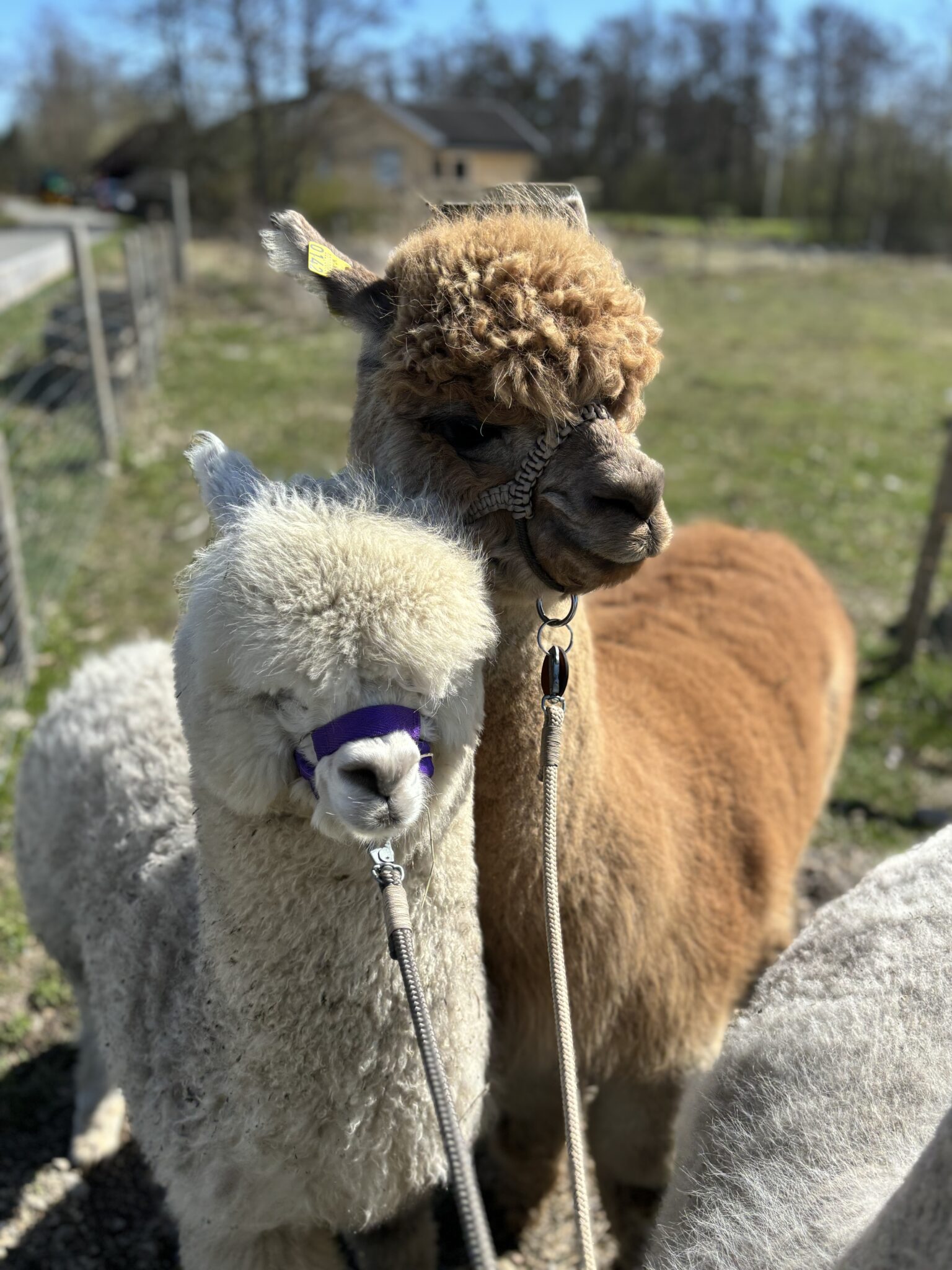 Vi møter deg på gården vår og tar deg med inn i alpakkahuset, eller på beitet om sommeren, hvor dere får treffe alpakkaene nært og personlig. Deretter setter vi grime og leietau på alpakkaene og tildeler hver av deltakerne sin helt egen alpakka som blir din under hele turen. Møtet mellom dyr og mennesker er noe som huskes. NB. Turene med alpakka må bestilles en uke på forhånd.