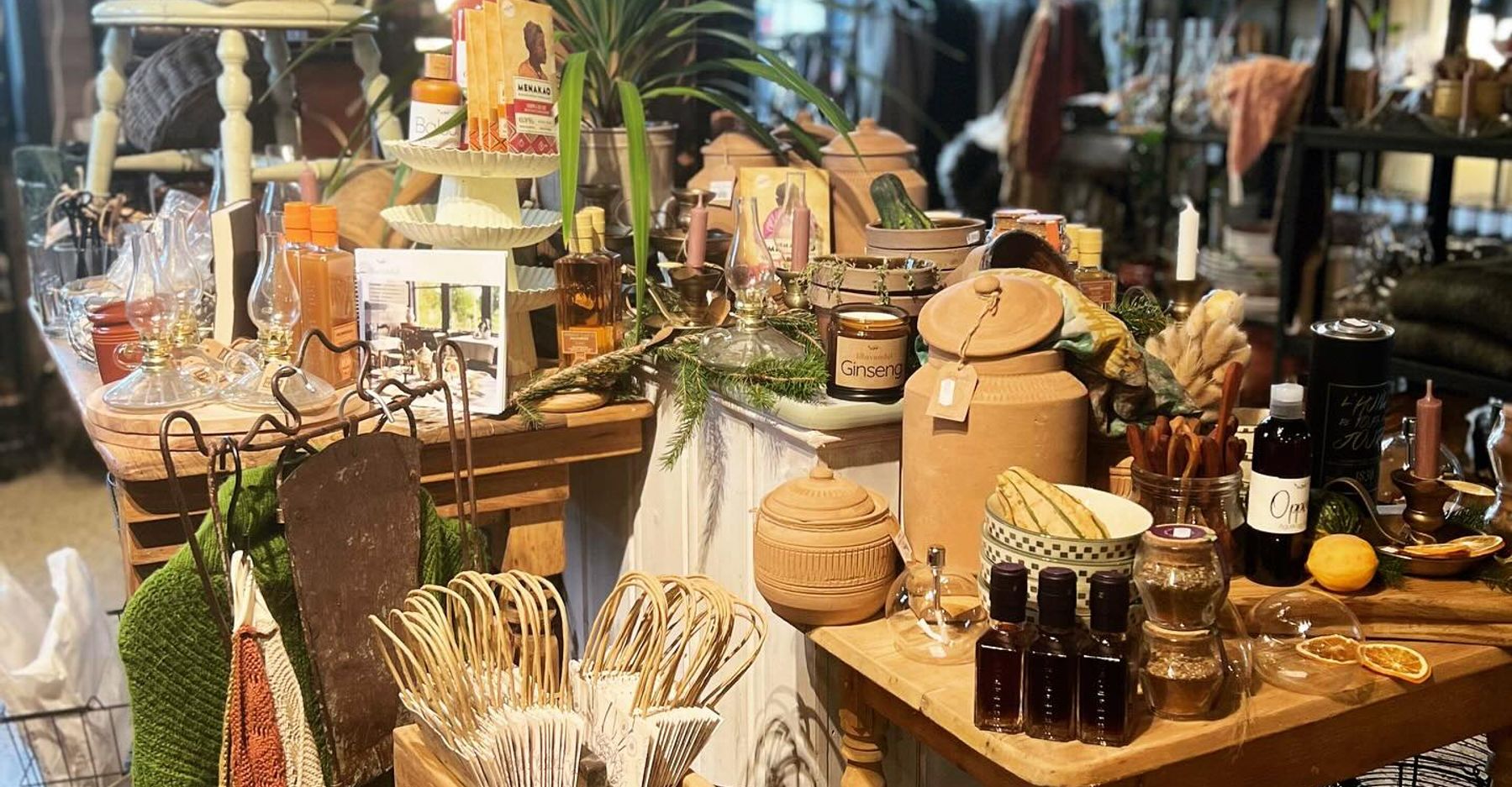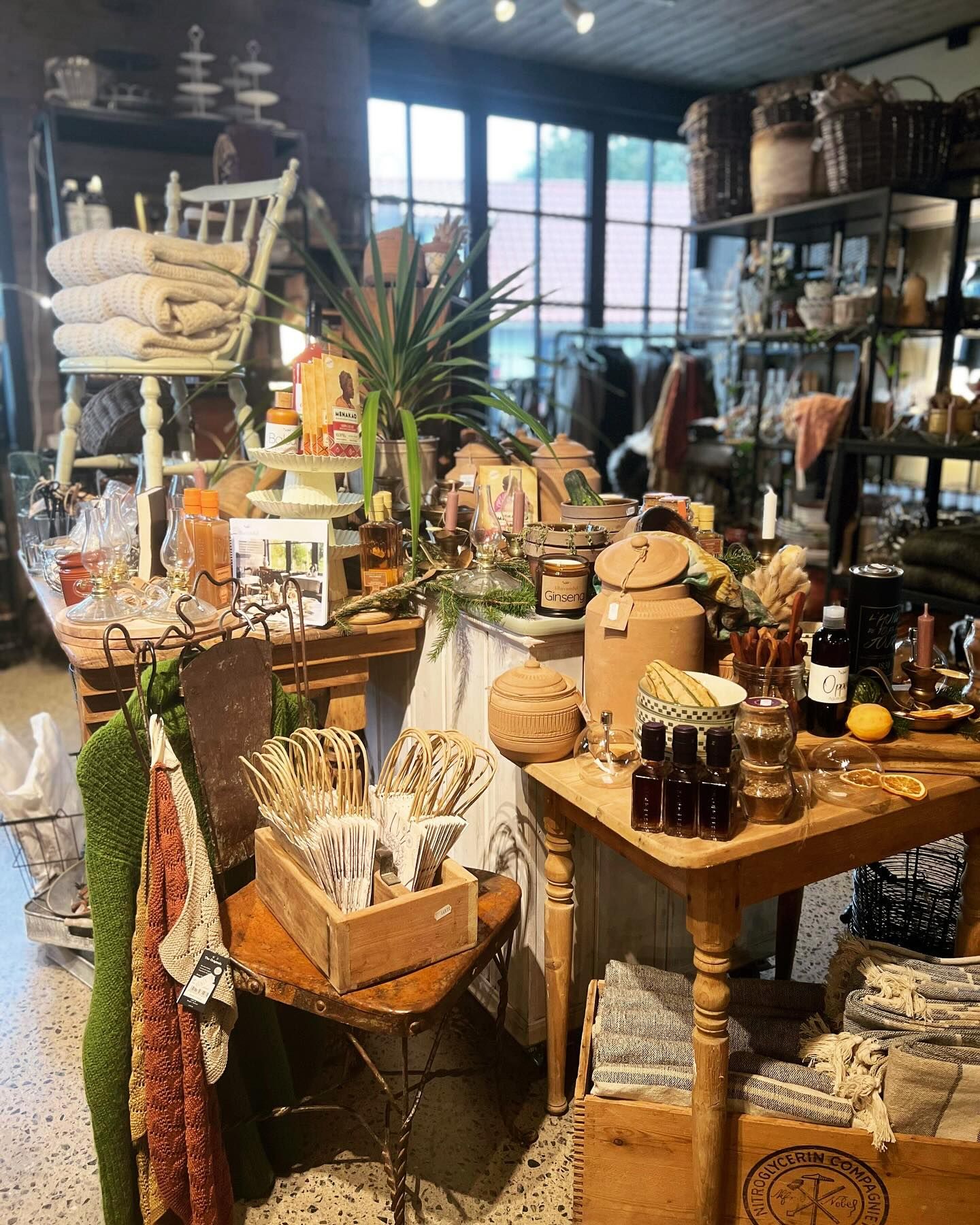 Vi har en rekke ulikt interiør i vår landhandel. Dette er nøye utvalgt interiør, som vi mener tidløst og til helårsbruk. Vi har hatt de samme merkene i mange år og er svært fornøyde med utvalget vi har i butikk til alle årstider. Uteområdet er godt dekorert på sommerhalvåret, men på vinterstid trekker mye av dette inn.